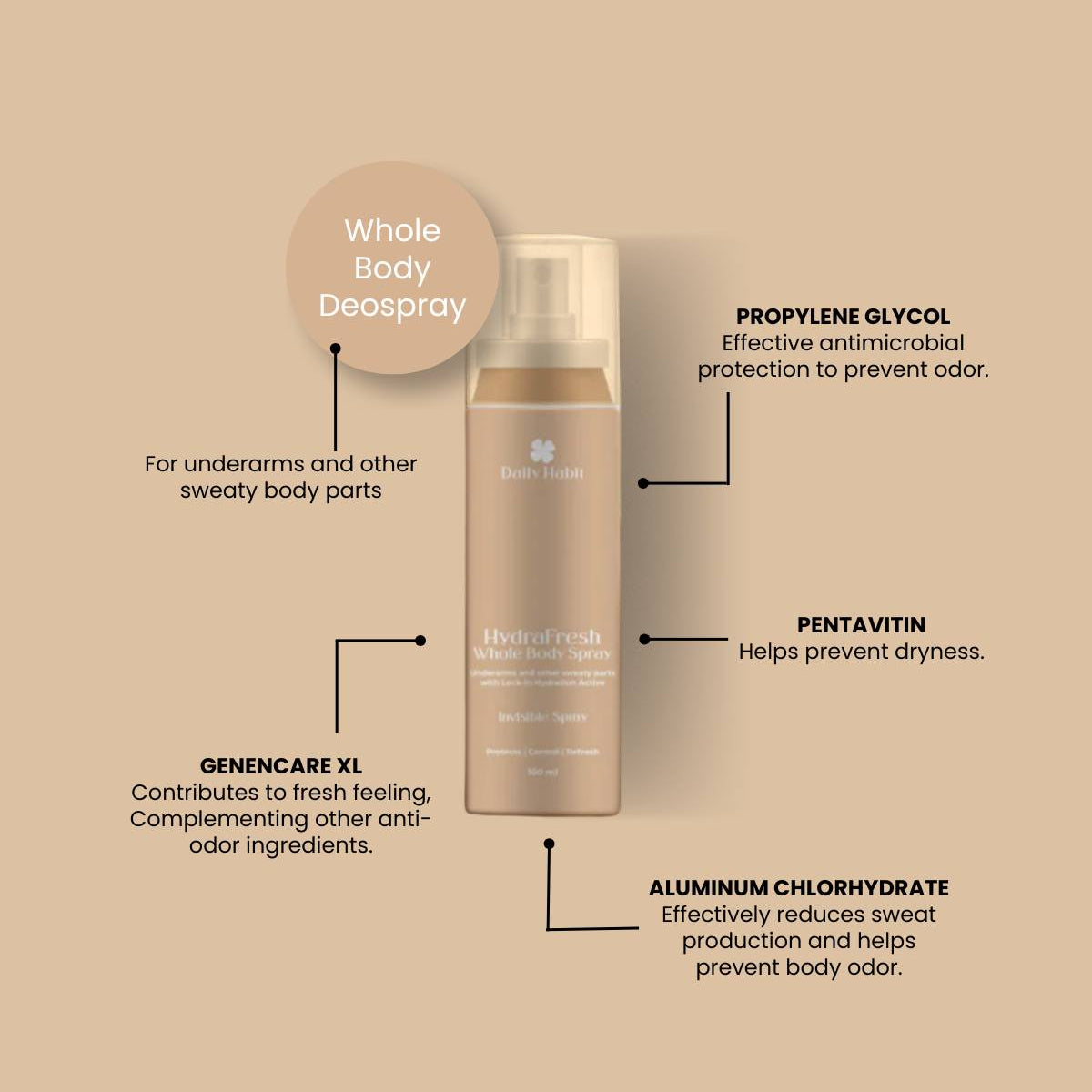 Daily Habit Hdrafresh Whole Body Deospray is your go-to solution for all-day freshness and confidence, specially formulated to withstand the challenges of the Philippine weather.